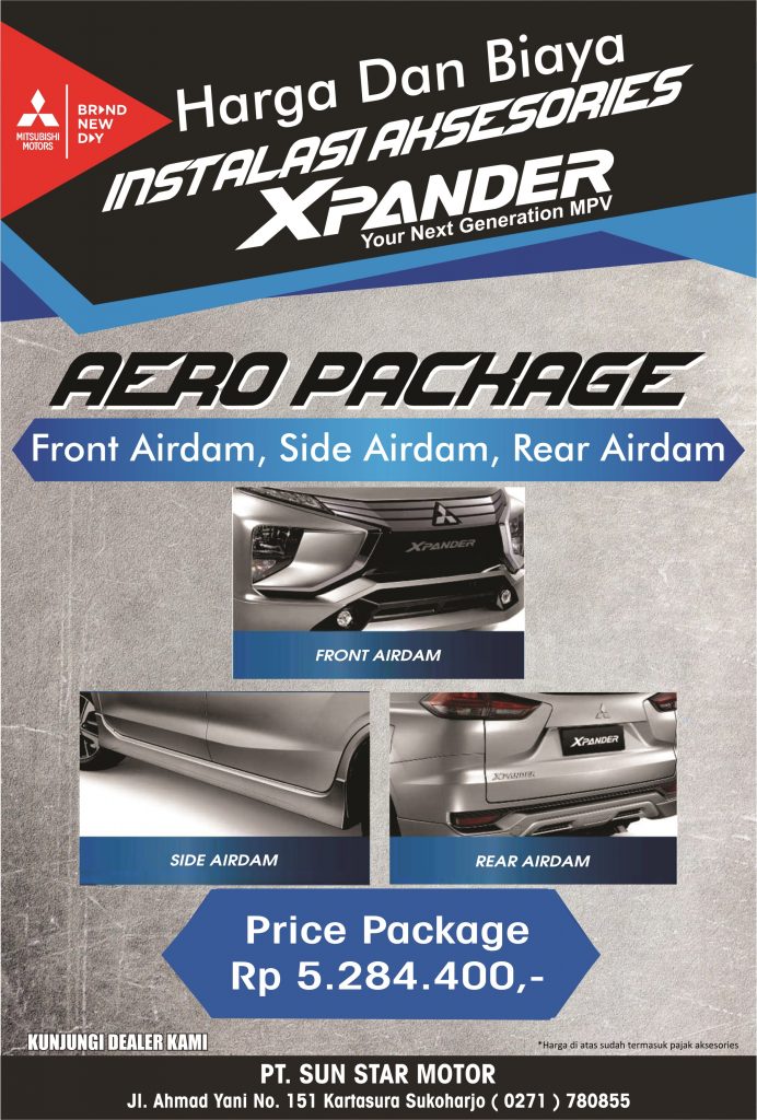 Aksesoris resmi Mitsubishi Xpander mulai ditawarkan oleh Mitsubishi dalam 4 paket dengan banderol harga Rp 910.800,- hingga Rp. 7.521.800,- Keempat paket tersebut diberi nama Basic, Aero, Aero Plus A dan Aero Plus B.