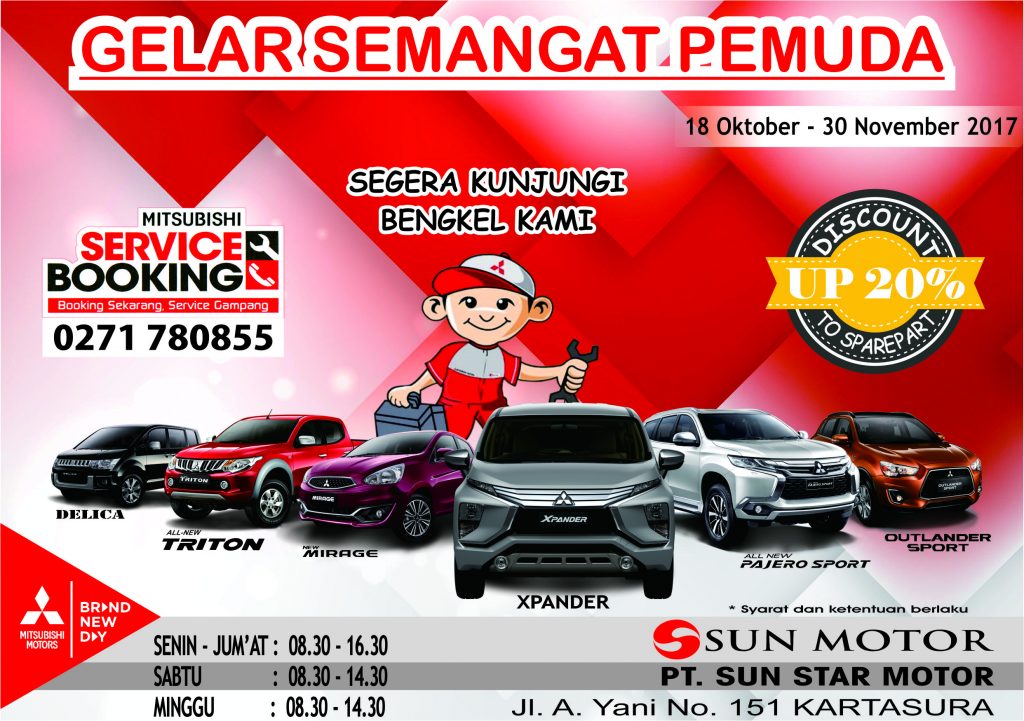 Manfaatkan promo ini… Buruan service kendaraan Mitsubishi Anda di PT. Sun Star Motor Kartasura.